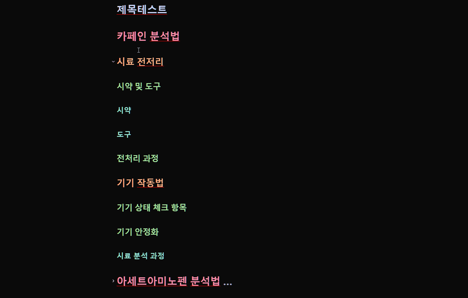 상위 항목 (# 제목1) 아래에 하위 항목 (## 제목12)이 존재하면