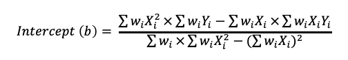 가중치가 적용된 수식을 살펴보면 기울기와 절편의 값이 다소 변경된 것을 확인할 수 있고,