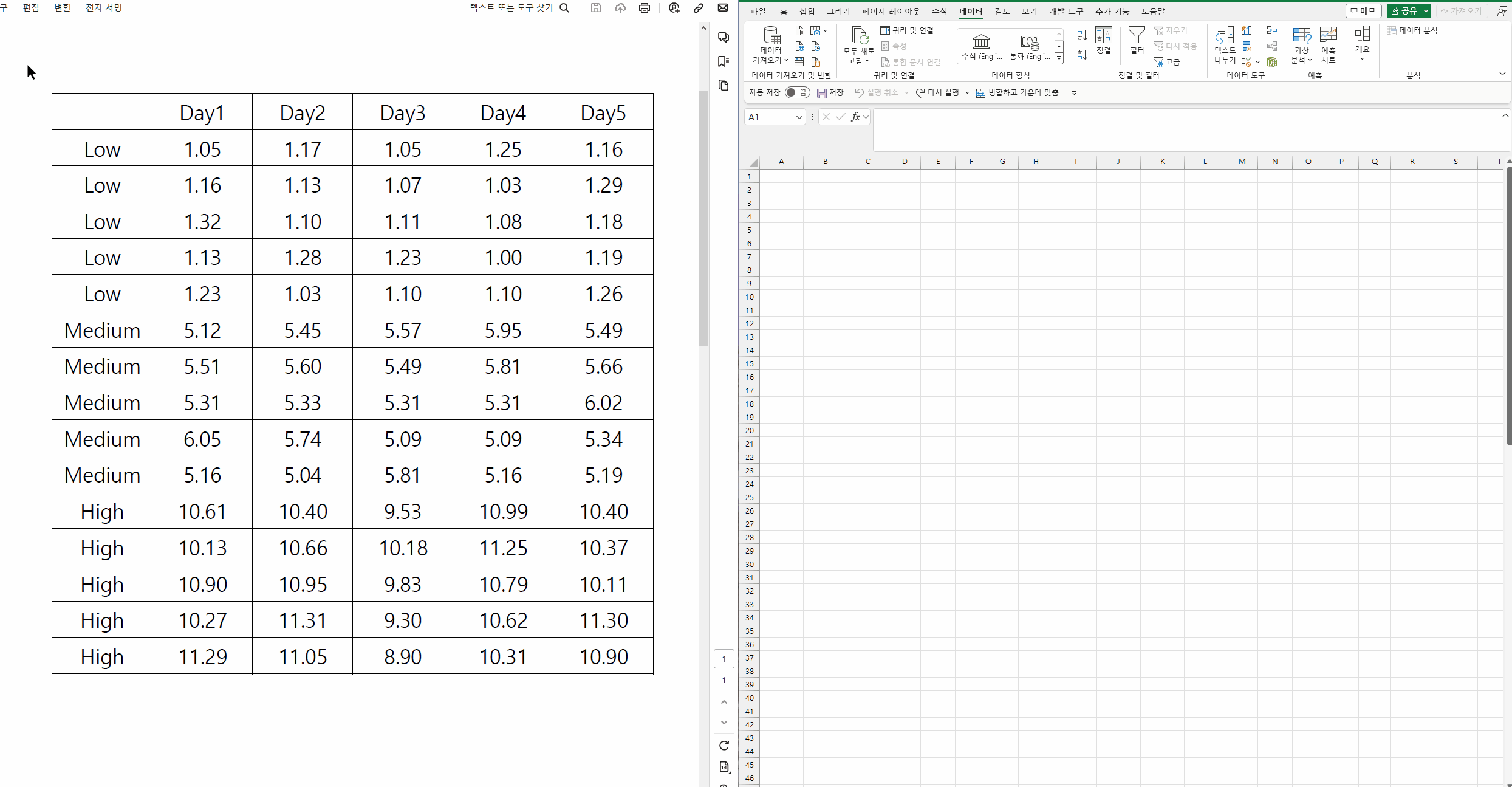 아래 영상은 화면 캡처와 엑셀에서 테이블 데이터를 가져오는 내용을 보여준다.
