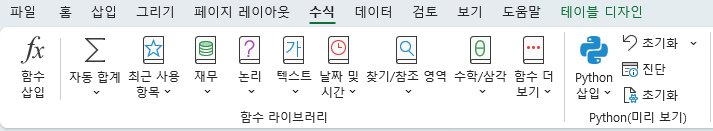 수식 메뉴에 "Python 삽입" 이 버튼이 보인다.