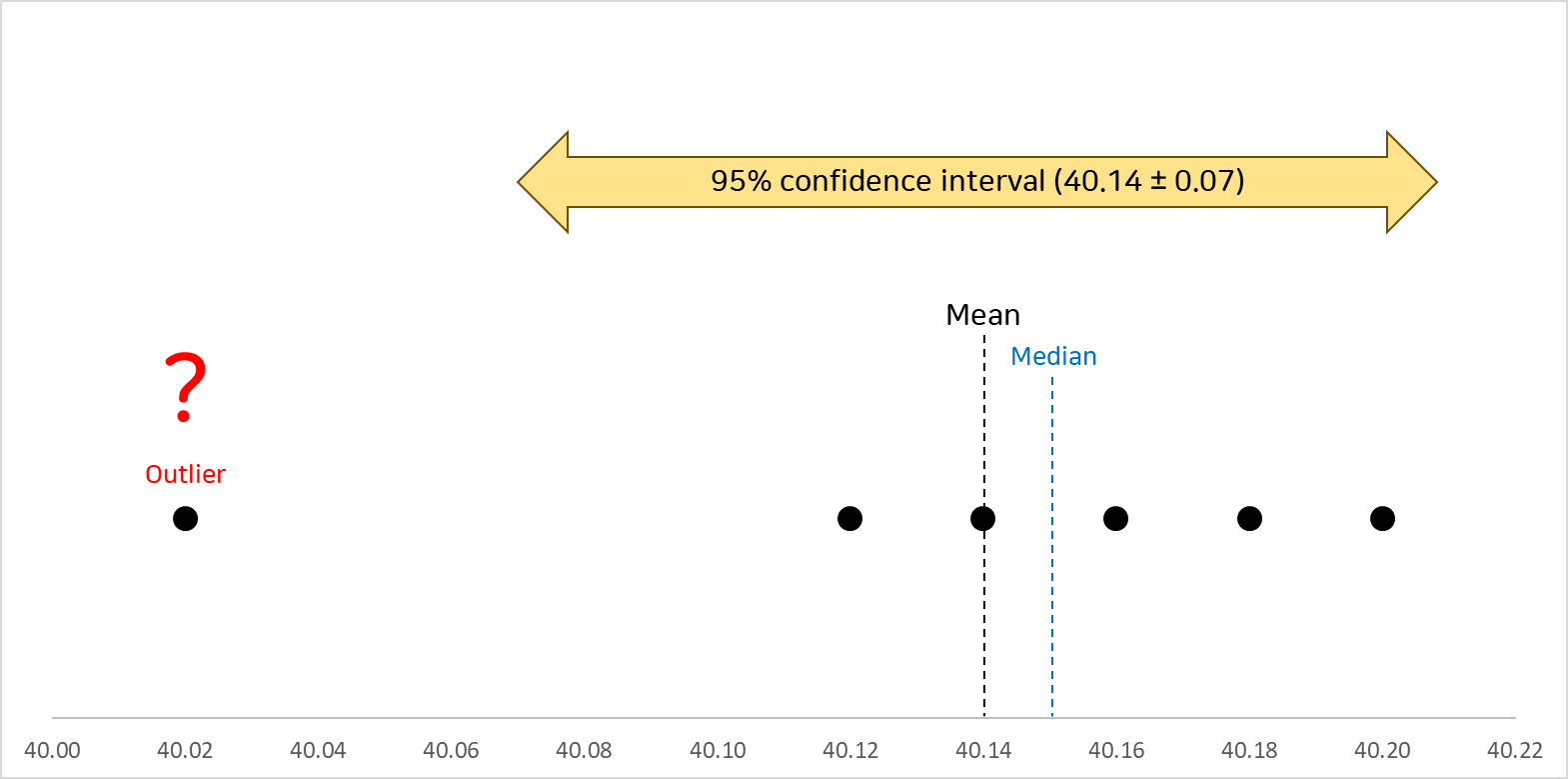 오차가 포함된 신뢰구간으로 이상치를 평가하는 것은 부정확할 수 있다.