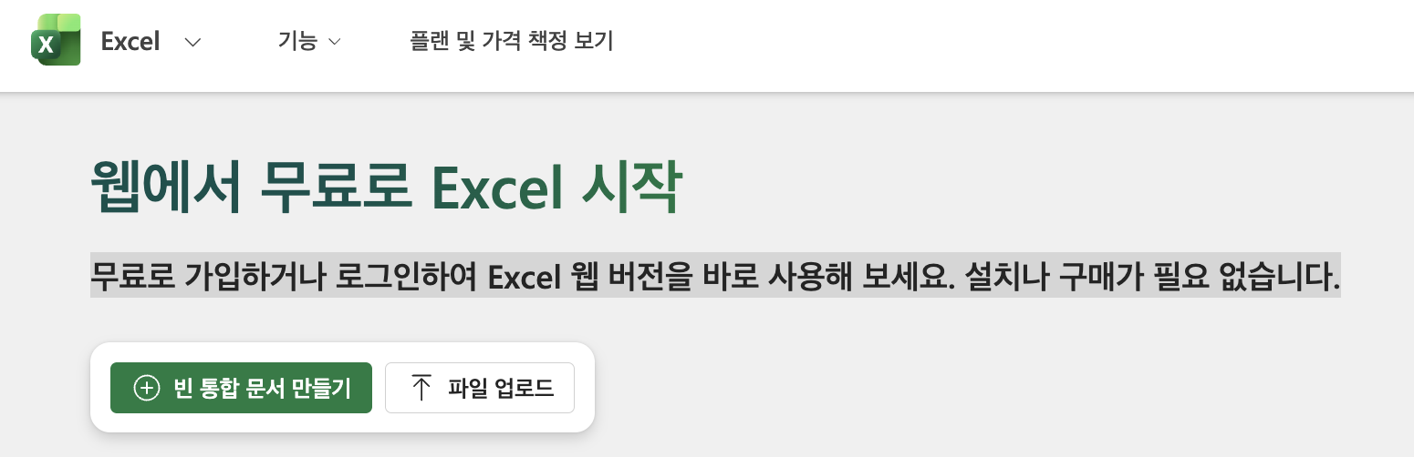 Microsoft 계정을 무료로 생성하고 아래 링크를 접속하면 웹용 Excel을 사용할 수 있다.