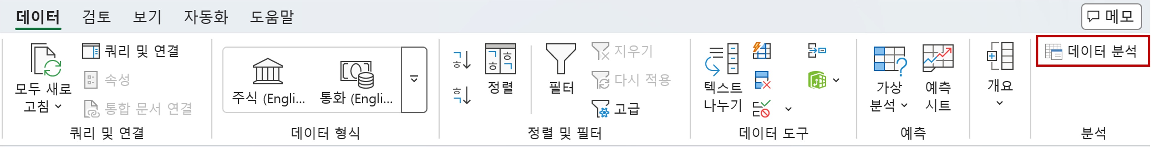 설치용 Excel에서 "데이터 분석 도구" 활성화 방법은 다음과 같다.